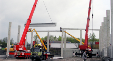 MobilKräne bewegen angelieferte Bauteile an vorgegebene